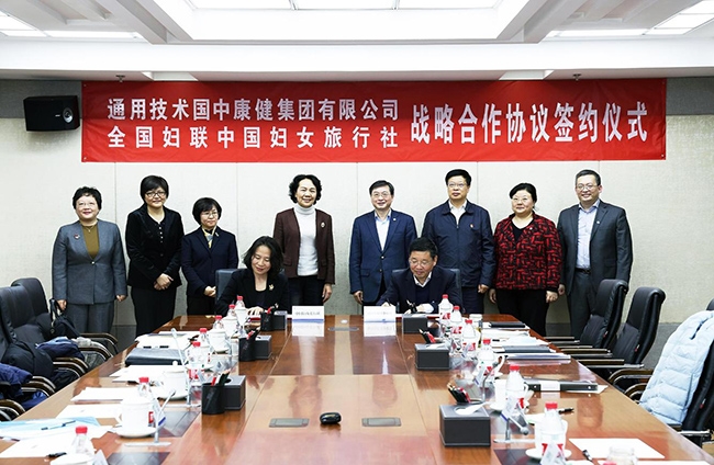 12月8日下午,通用技术国中康健集团有限公司与全国妇联中国妇女旅行社签署战略合作协议,双方建立战略伙伴关系,将在康养产品开发、“旅游+健康”、“旅游+养老”、医疗健检、职工健康管理等领域开展全方位合作。中华全国妇女联合会书记处书记、党组成员杜芮,通用技术集团总经理、党组副书记陆益民,副总经理、党组成员周明春,通用技术集团总经理助理、健康事业部、协同部总经理刘昆出席仪式。国中康健董事长、党委书记张刚主持仪式。国中康健总经理、党委副书记王树炎与中国妇女旅行社总经理胡杨代表双方签署战略合作协议。国中康健副总经理、党委委员谢希为,中国妇女旅行社副总经理李锐、赵悦参加仪式。