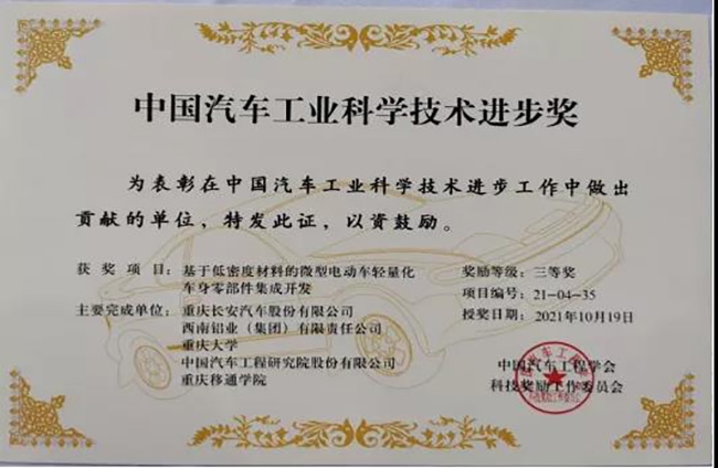 通用技术中国汽研牵头完成的“汽车摩擦异响识别及控制关键技术研究与应用”项目和参与完成的“基于低密度材料的微型电动车轻量化车身零部件集成开发”项目荣获中国汽车工业科学技术进步奖三等奖!
